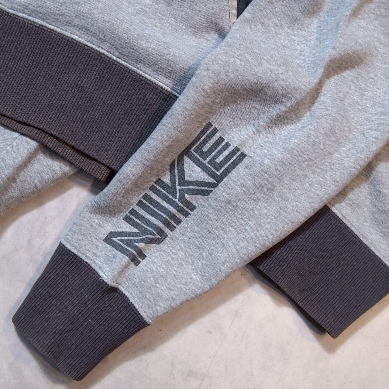 胸には刺繍のスウォッシュ、袖にはNIKEの文字がデザインしれています。